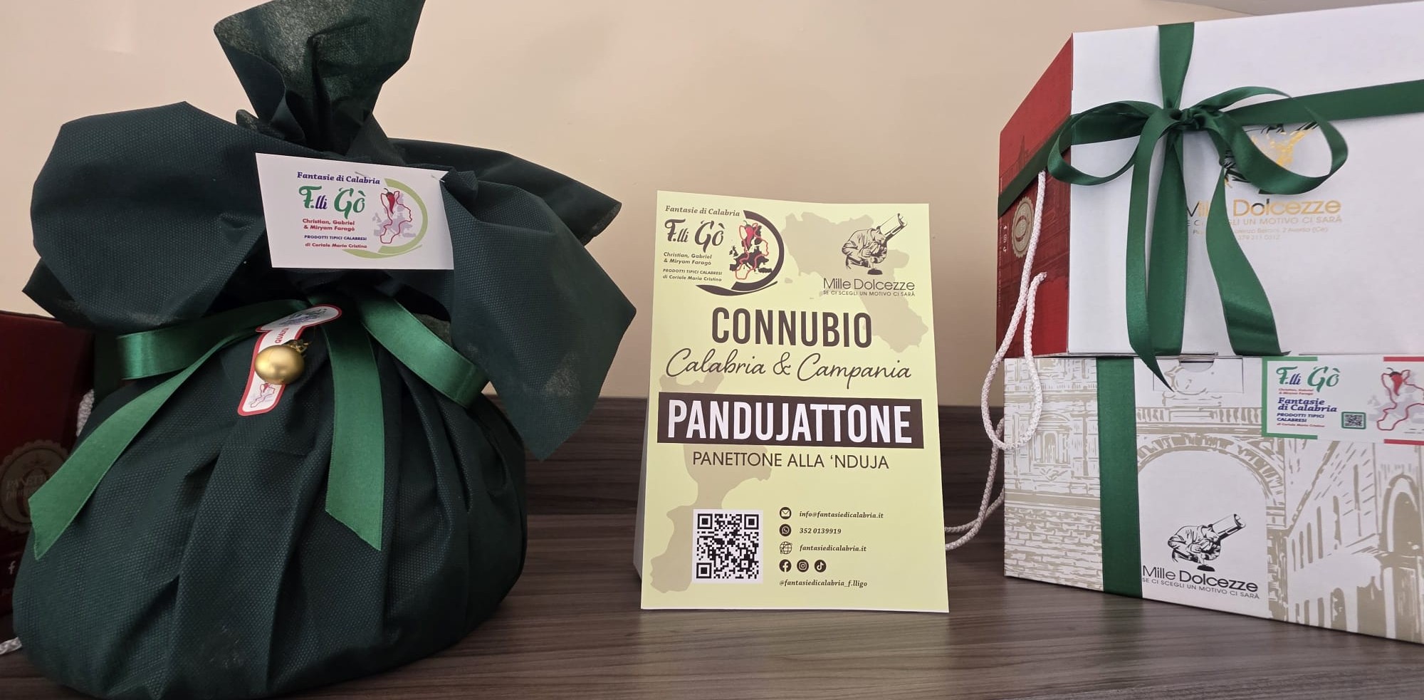 È un panettone al sapore di ‘nduja, anche se ha le sembianze e la struttura di un classico panettone, nato dal connubio Calabria – Campania.