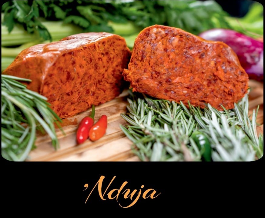 La ’nduja è un salume tipico della Calabria, in particolare del comune di Spilinga (provincia di Vibo Valentia). È una salsiccia morbida e spalmabile, dal gusto piccante e dal colore rosso intenso, dovuto all’abbondante presenza di peperoncino calabrese.