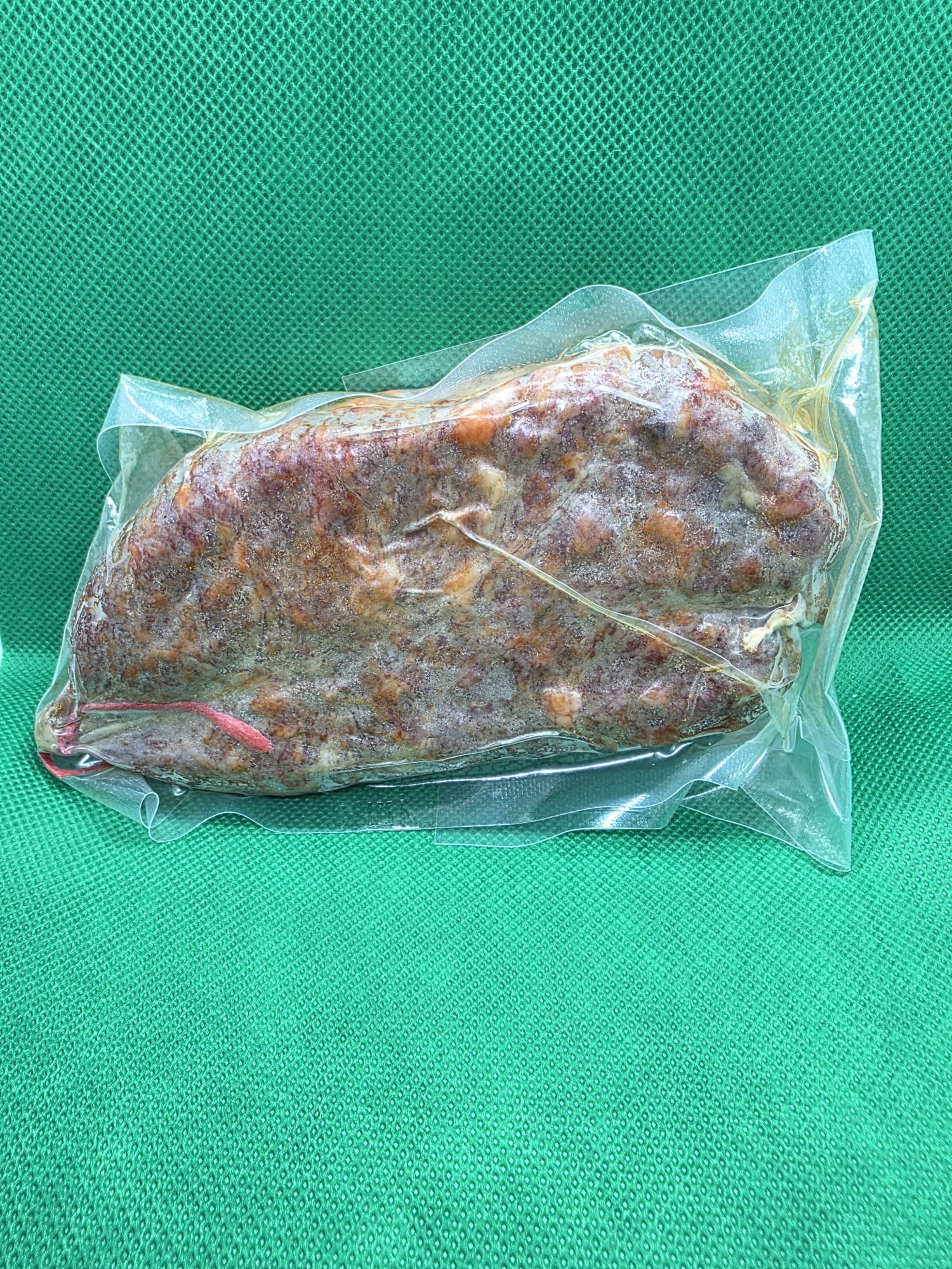 La soppressata silana calabrese è uno dei salumi tipici più pregiati della tradizione calabrese, in particolare della zona montana della Sila, caratterizzata da pascoli ricchi e aria fresca e asciutta che favoriscono una stagionatura naturale e di alta qualità.